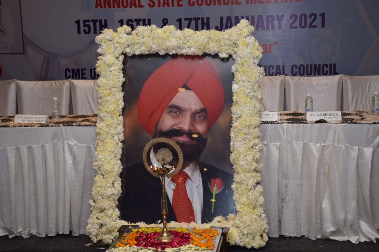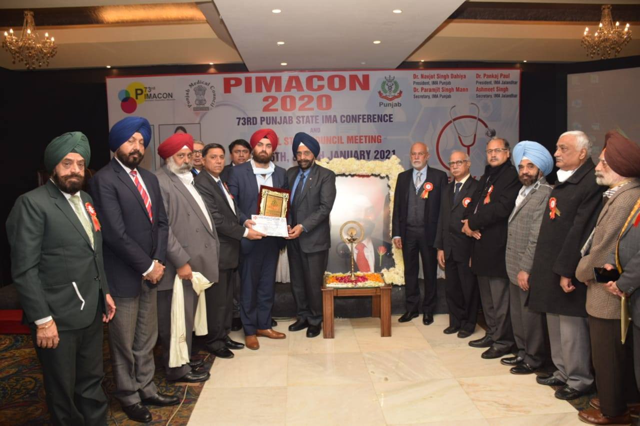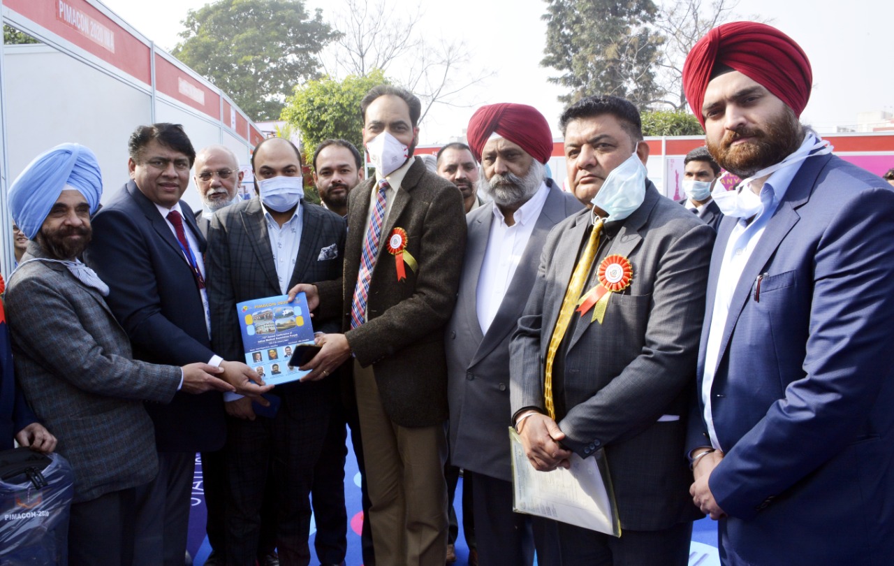 Dr Gubeer Gill welcoming the chief guest Sh. Husan Lal ji Chief Secretary Health Punjab along with national President of IMA and other dignitaries. They released the PIMACON Sovenier of year 2020.